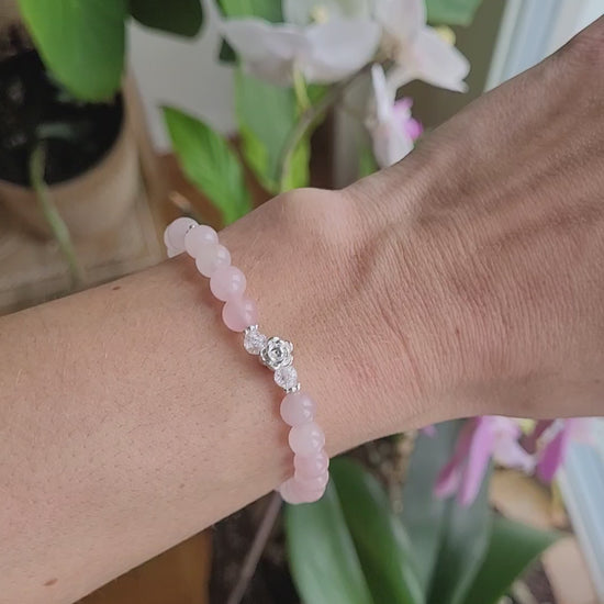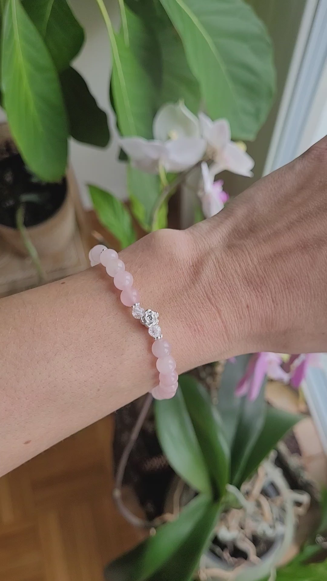 ✨Bracelet en Quartz Rose et Rose délicate en argent