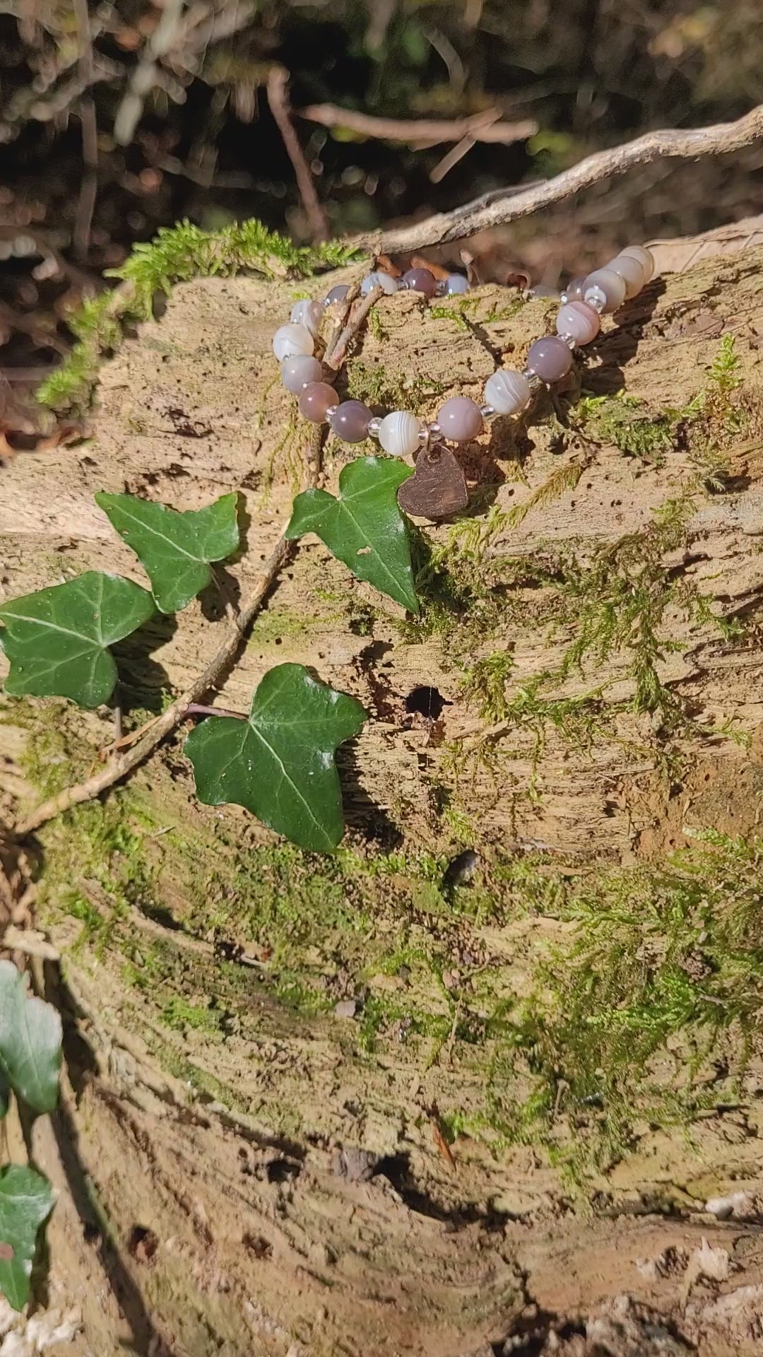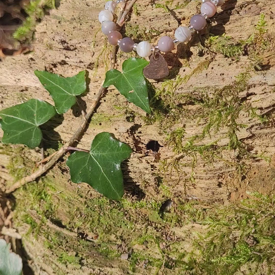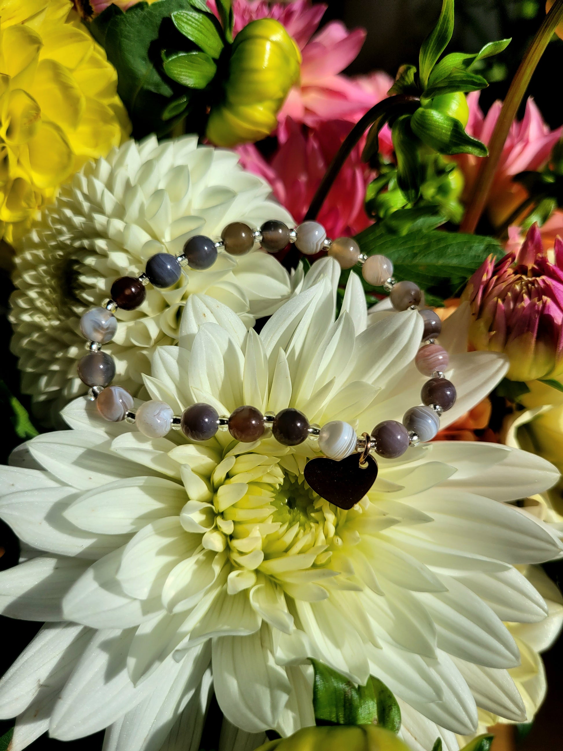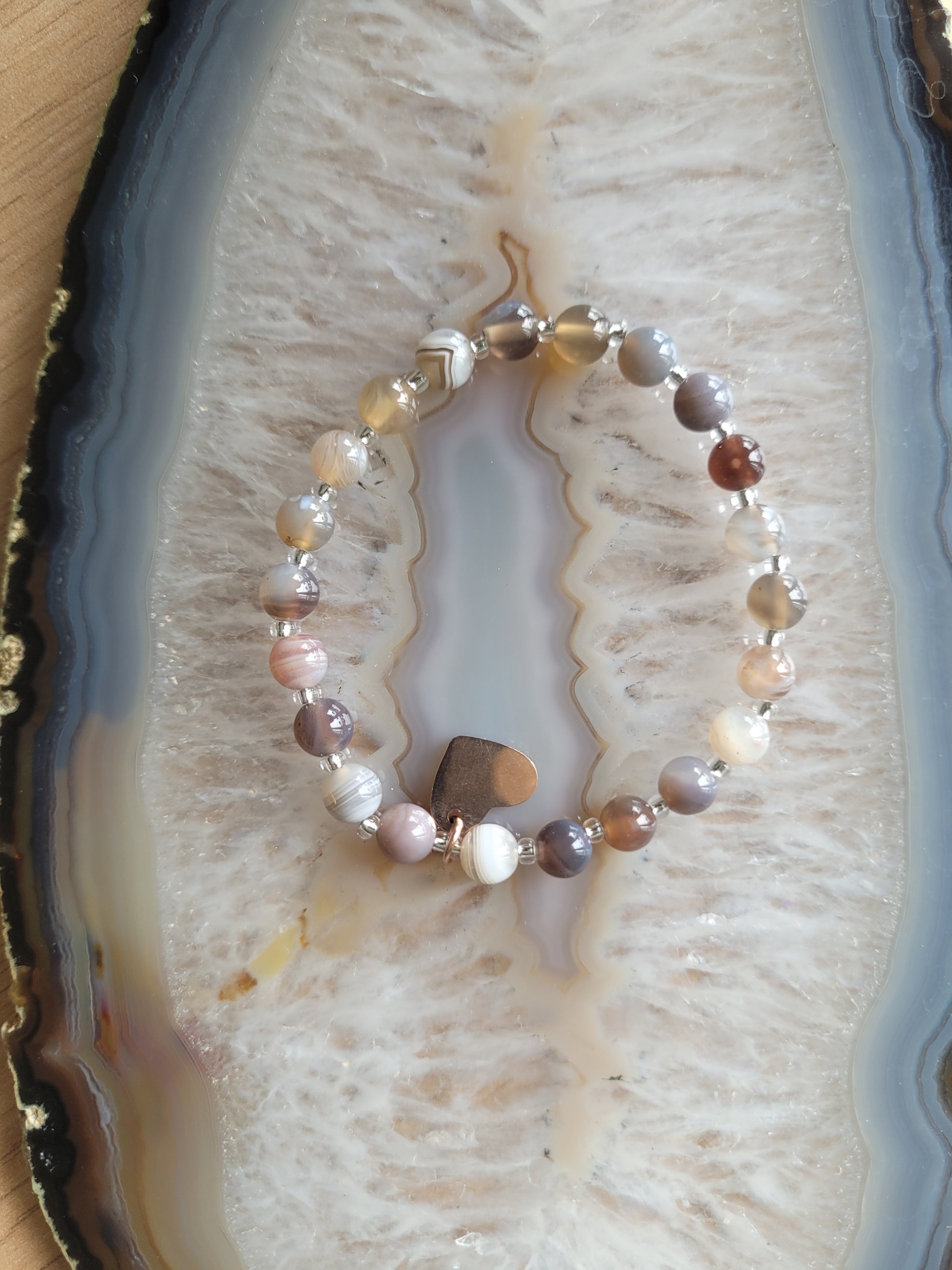 🌿Bracelet en Agate du Botswana et pendentif coeur couleur or rose