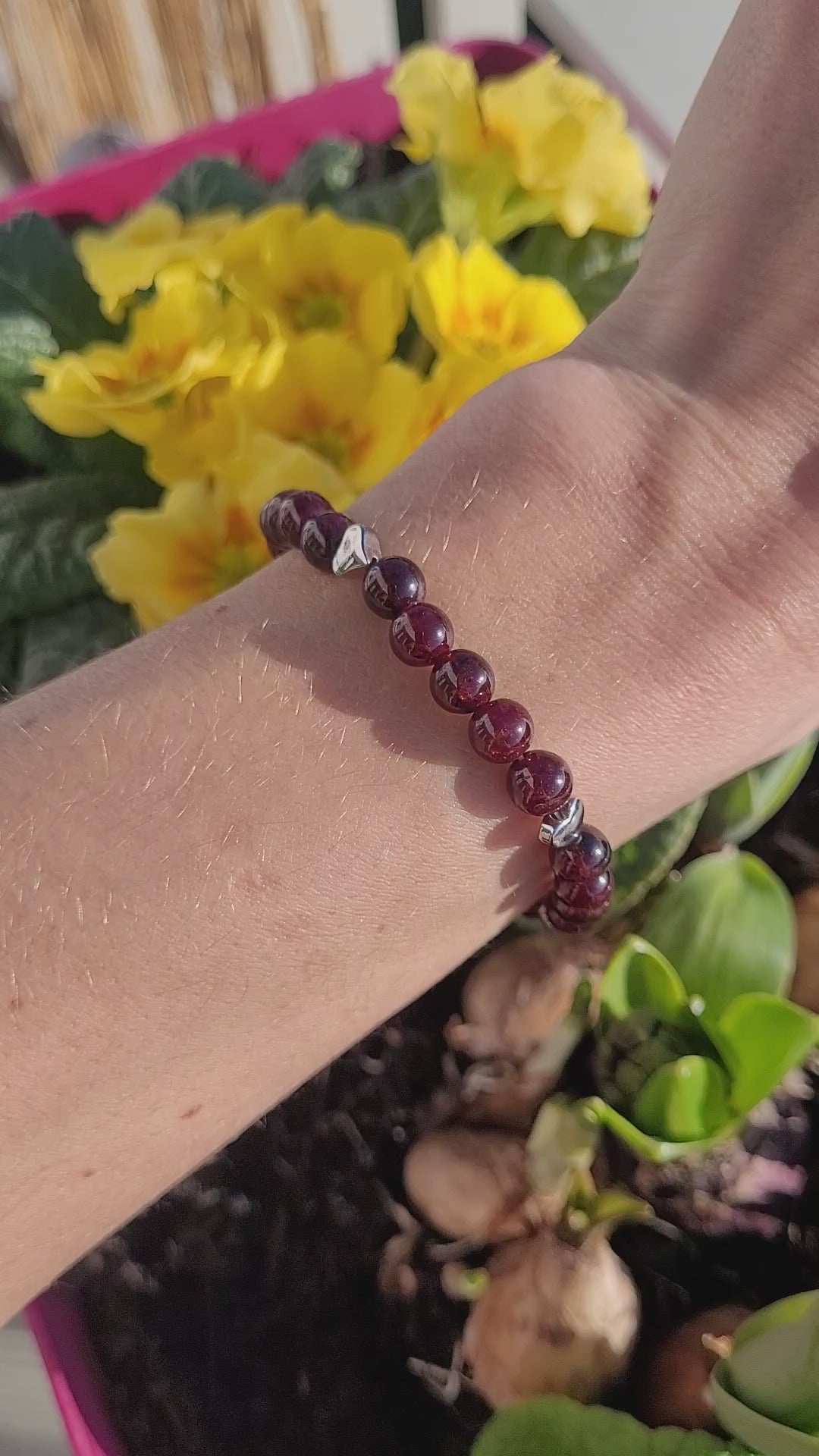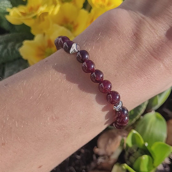 💎 Bracelet en Grenat Almandin et coeurs en métal argenté 💖