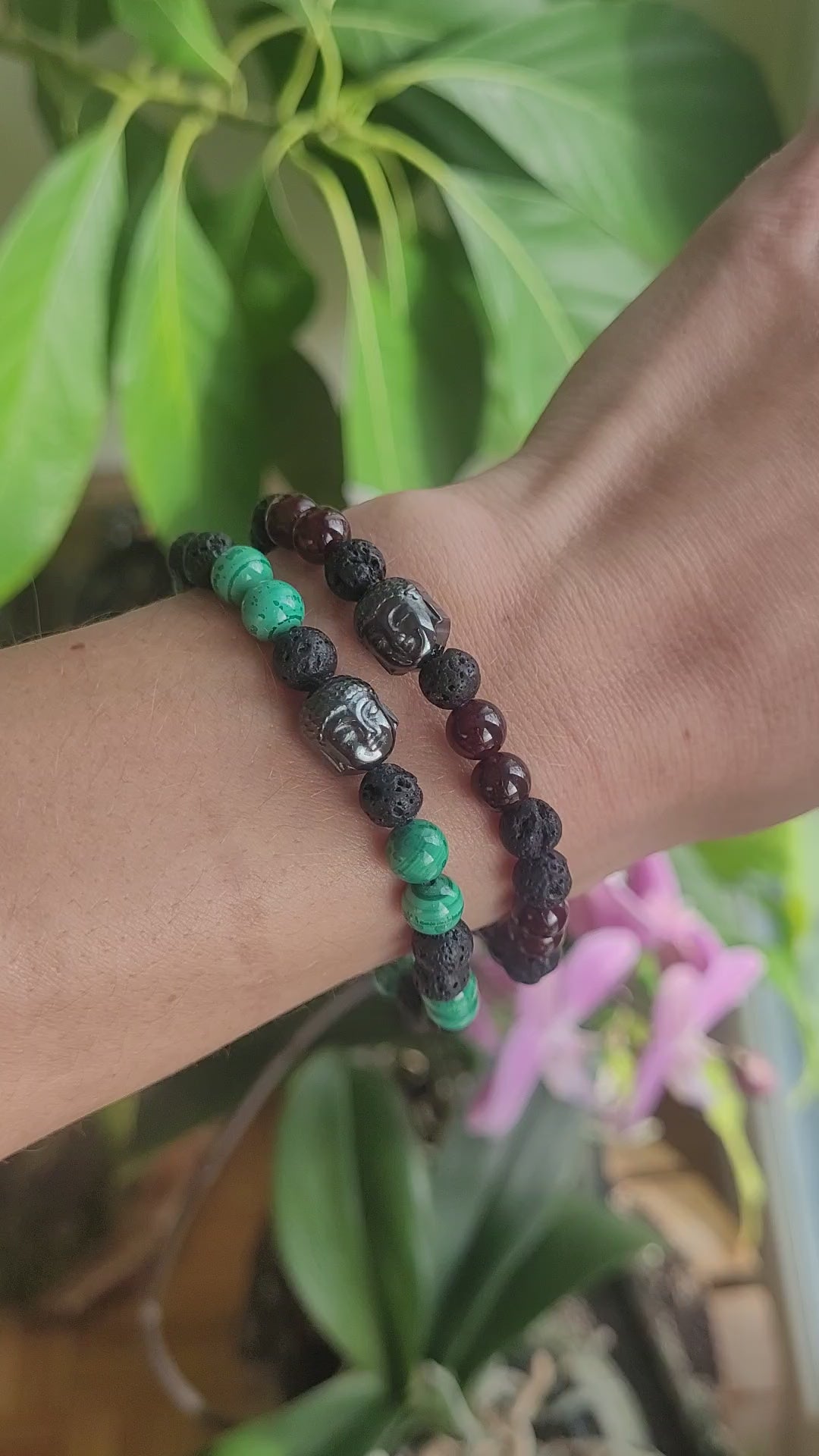 Bracelet en Lave et Malachite et Bouddha en Hématite