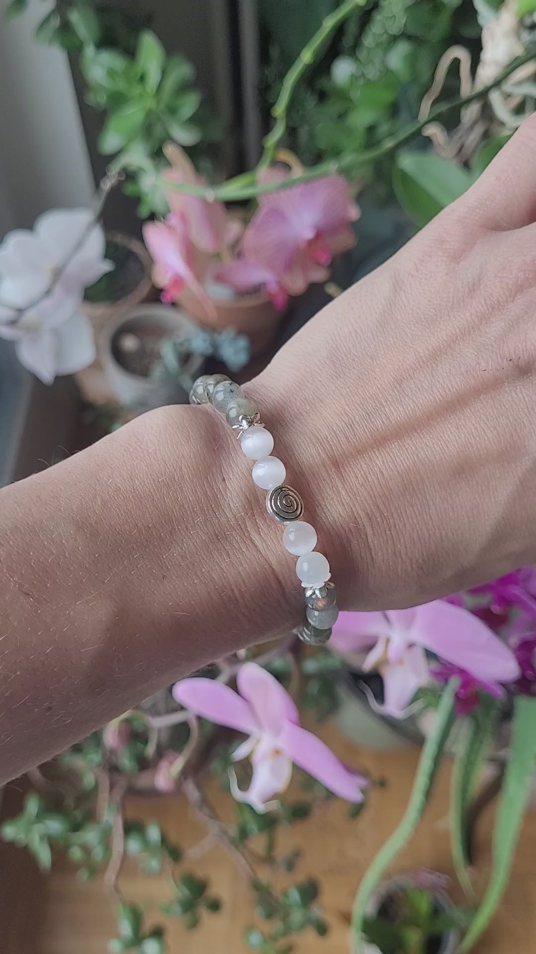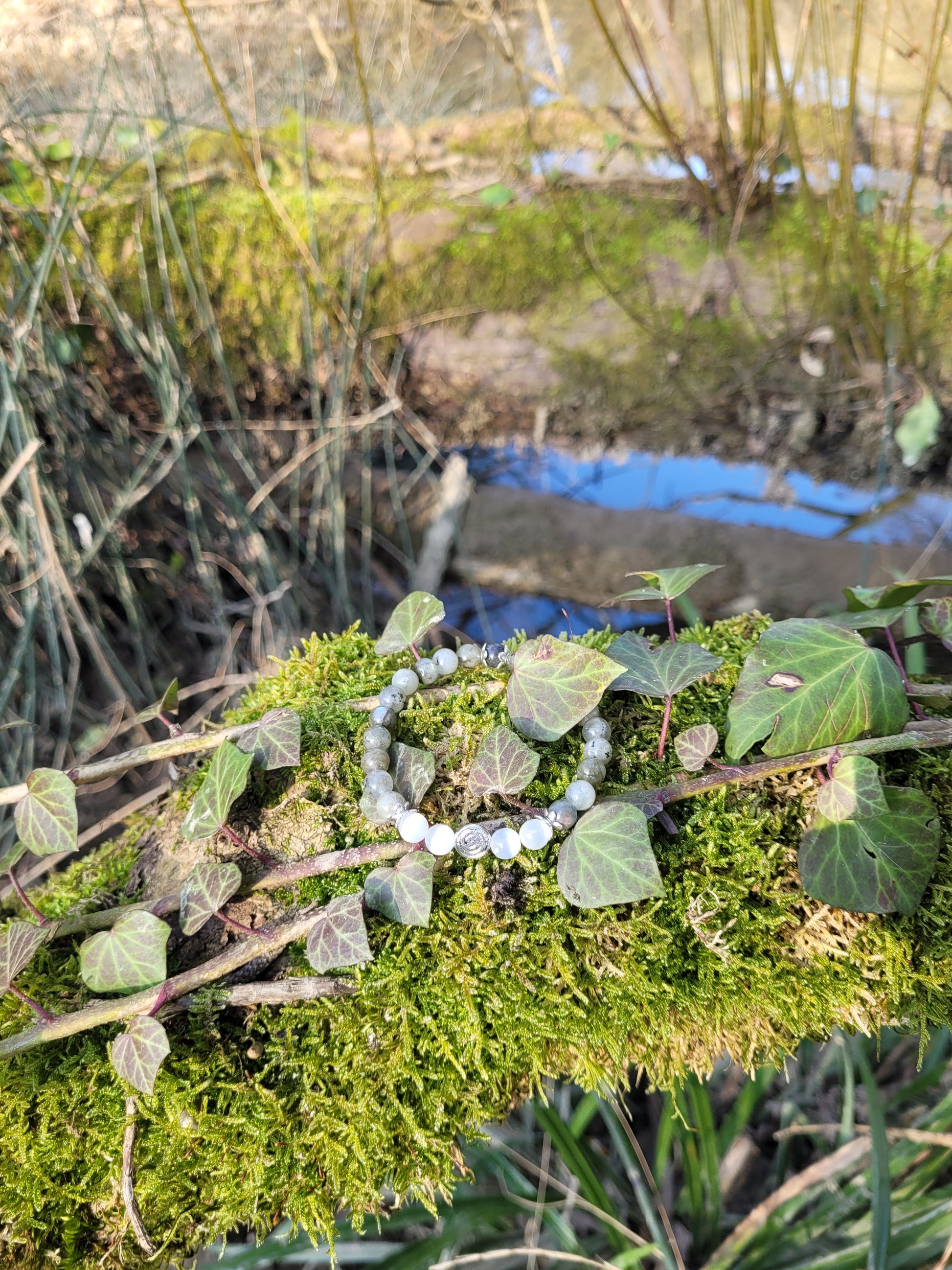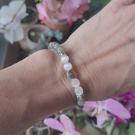 Bracelet en Sélénite, Labradorite et spirale argentée