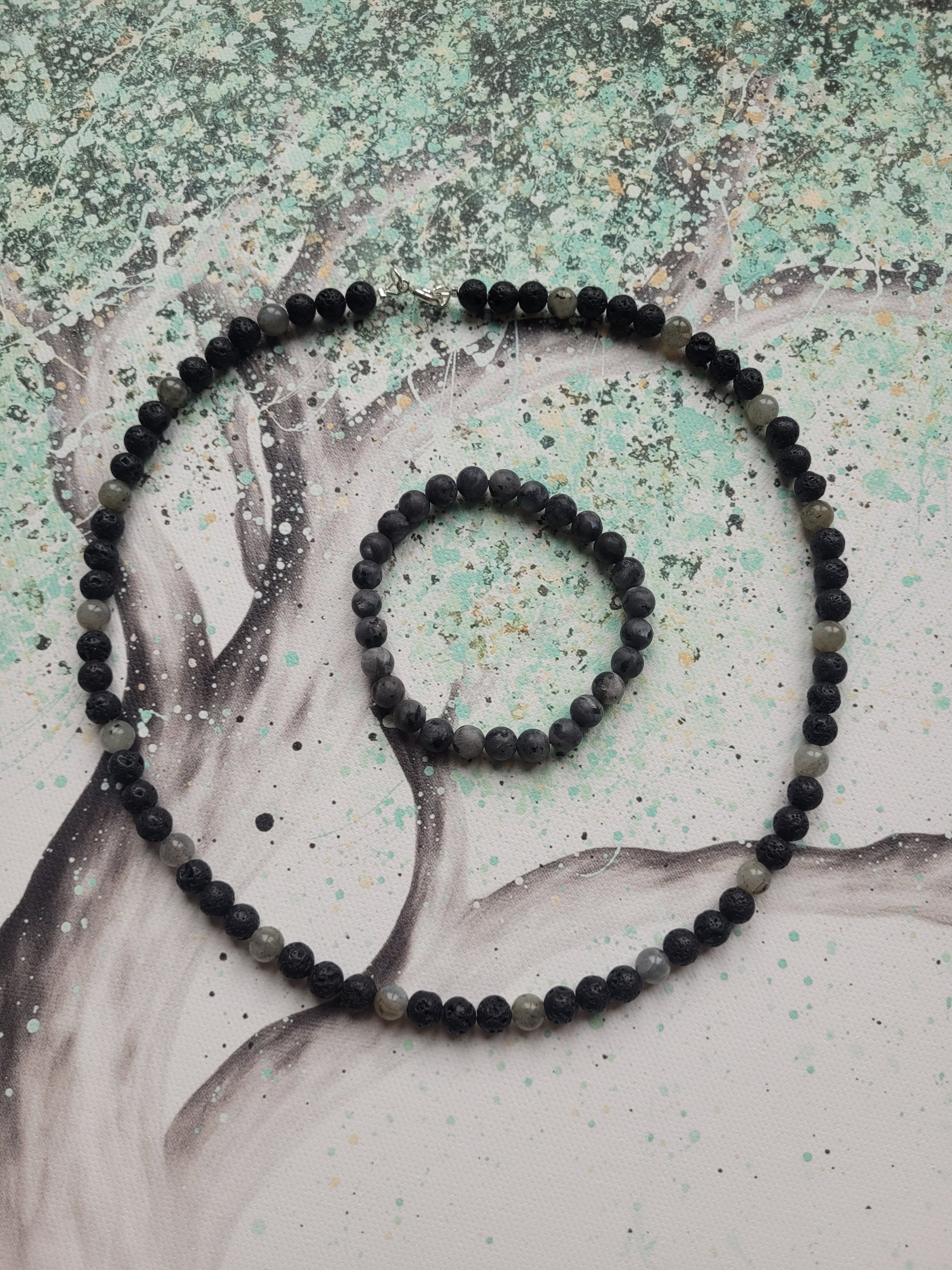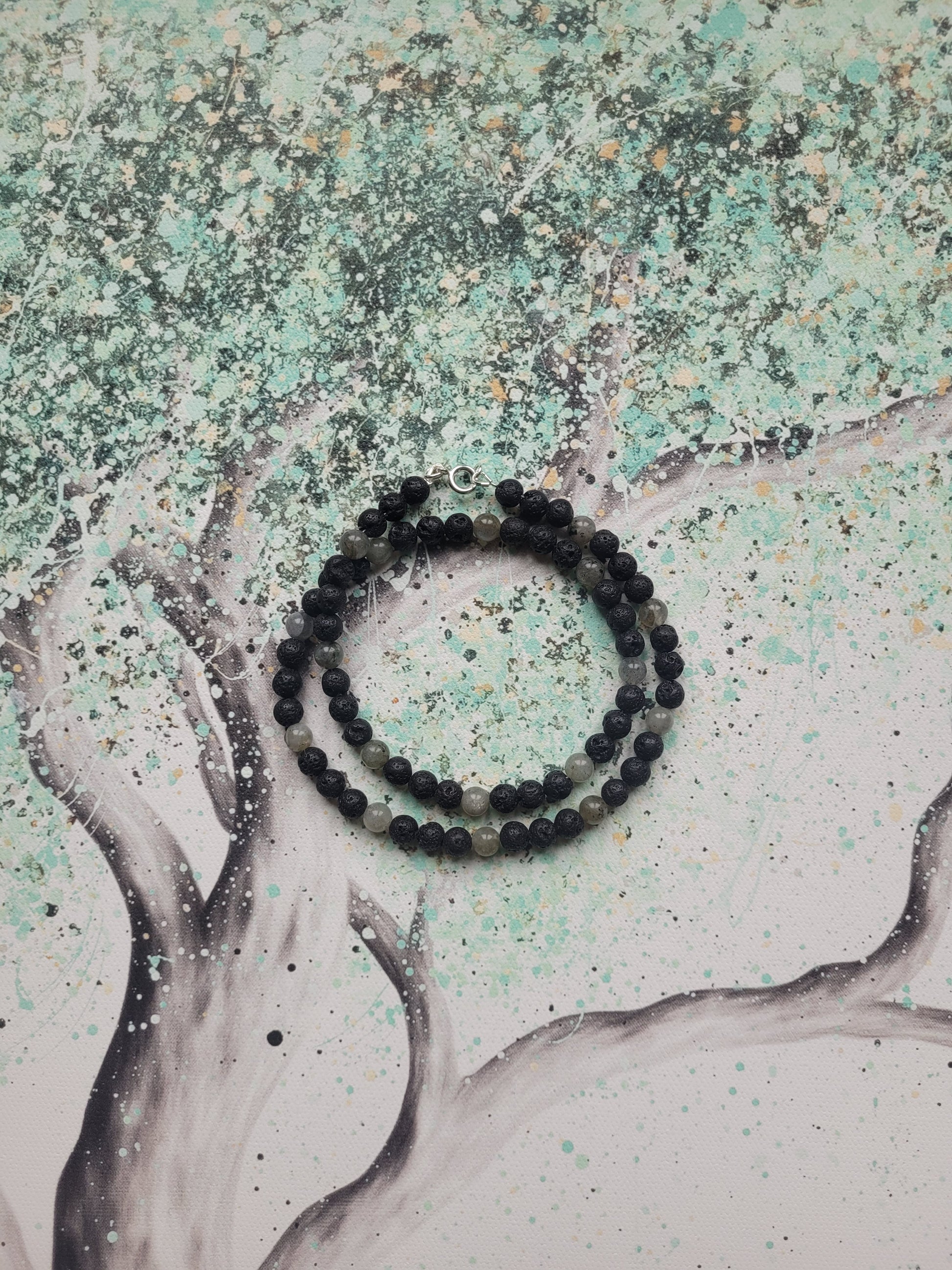 🌋Collier en Lave et Labradorite✨